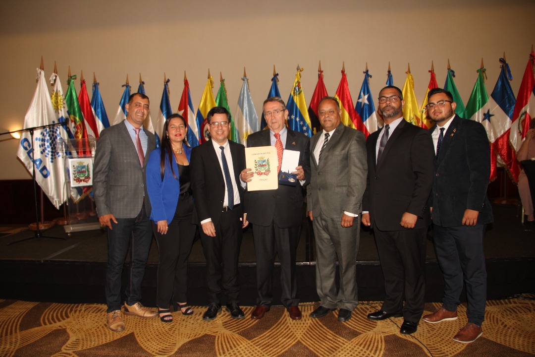 Acto seguido, el alcalde del municipio Gustavo Duque ofreció un discurso de agradecimiento al CLAD, indicando la importancia de fortalecer las alcaldías venezolanas, señalando que las puertas de Chacao están abiertas para servir como puente para fortalecer el poder local.