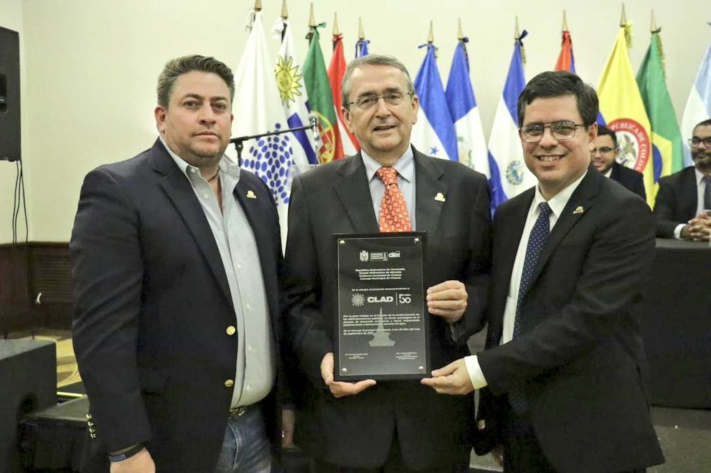 Finalizada la Sesión Especial, se le hizo entrega al CLAD de una placa de reconocimiento en su 50° Aniversario, y se le otorgó al Secretario General la Orden Don José Solano y Bote en su Segunda Clase “El Comendador”, en calidad de representante del Centro Latinoamericano de Administración para el Desarrollo.